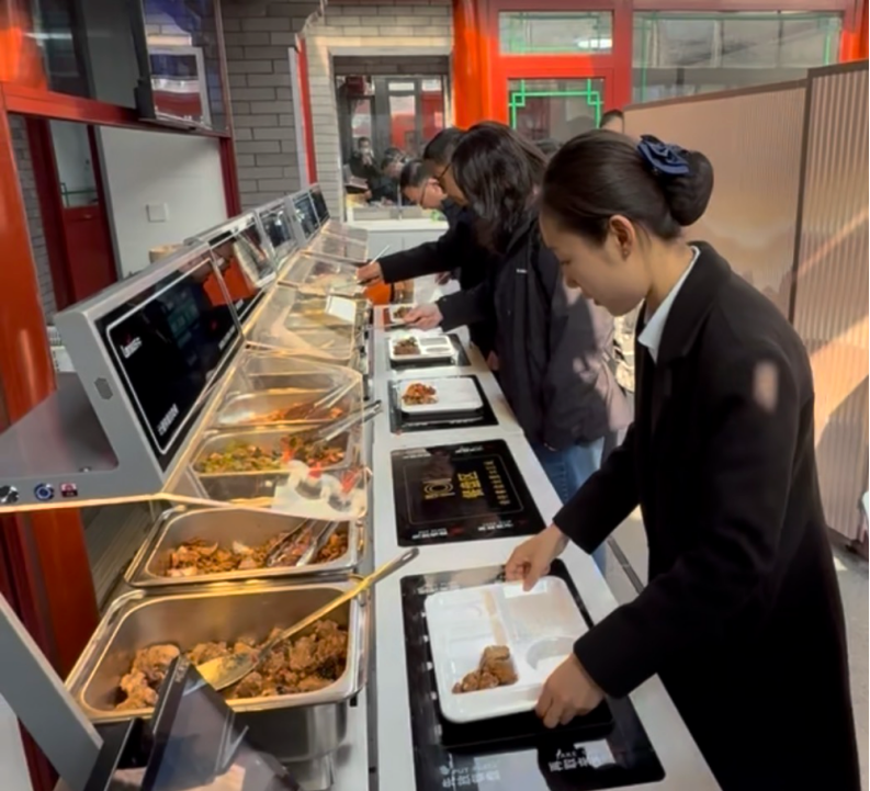 “Facial recognition, self-service meal pickup, and automatic payment — it all takes less than a minute,” said Wang Dan, who works nearby. After verifying her identity through a face scan, she selected her dishes — stir-fried pork with eggs and sauteed broccoli. Prices were calculated instantly based on each item, and payment was automatically deducted from her stored-value account — no cashier or QR code required.