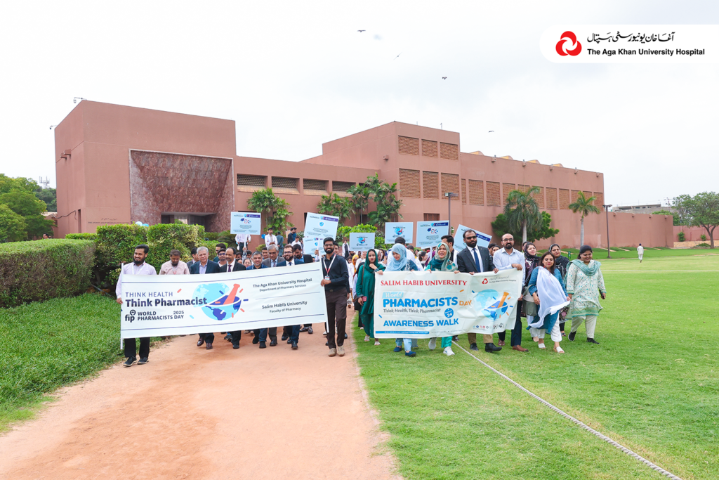 Karachi, September 25, 2025: The Aga Khan University Hospital (AKUH) marked World Pharmacists Day with an awareness walk and a cake-cutting ceremony at the AKU Sports and Rehabilitation Centre, celebrating the indispensable role pharmacists play in advancing patient safety, optimising treatment, and improving health outcomes.