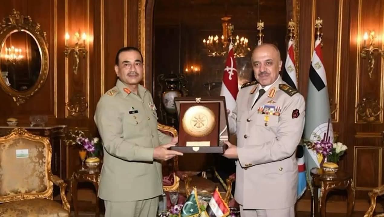 The Field Marshal called on Egyptian Minister of Defence and Defence Production, General Abdul Maged Saqar and Chief of Staff of Egyptian Armed Forces Lieutenant General Ahmed Khalifa Fatehi. During the meetings, matters of mutual interest, regional security situation and bilateral defence cooperation were discussed.