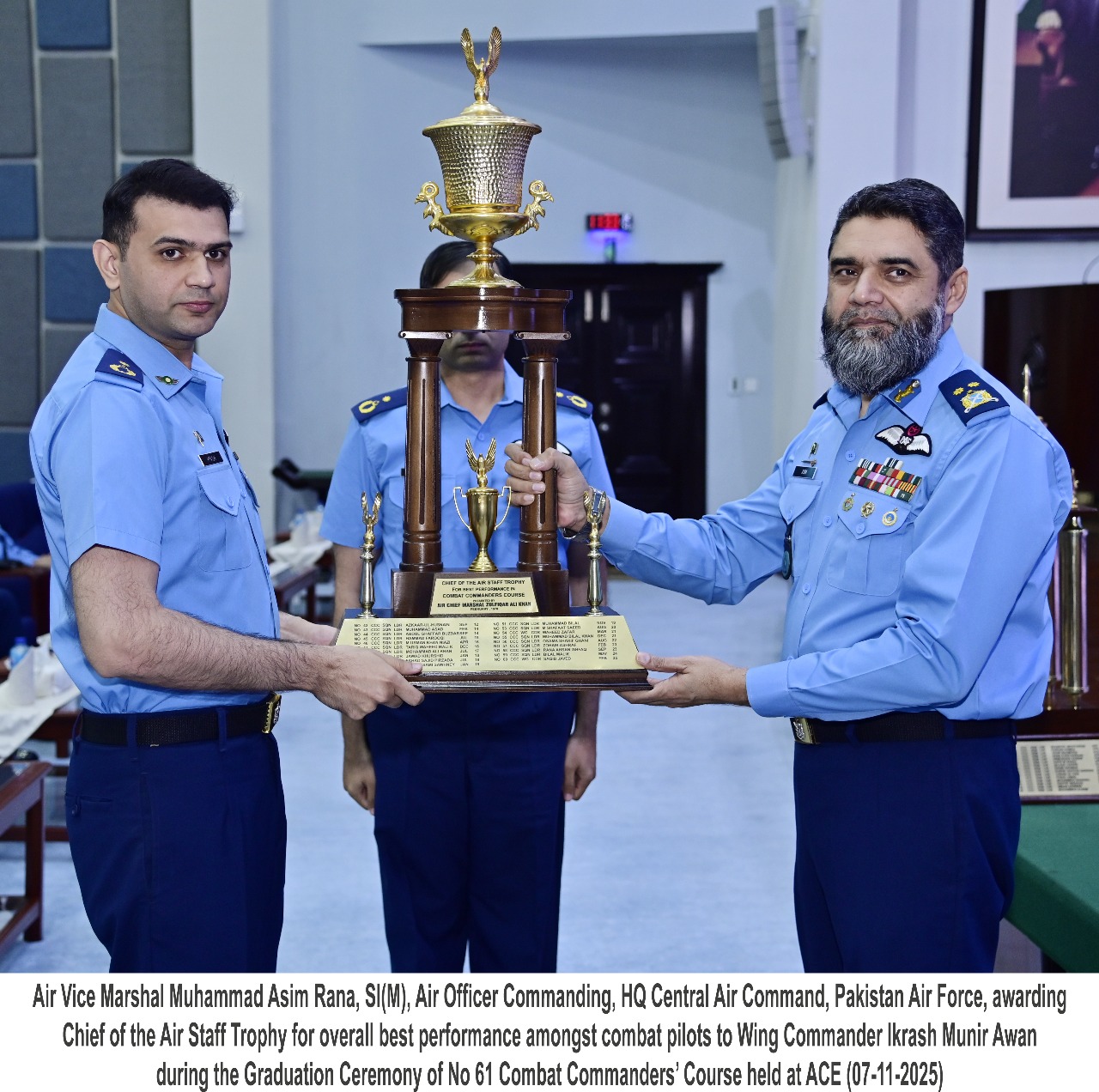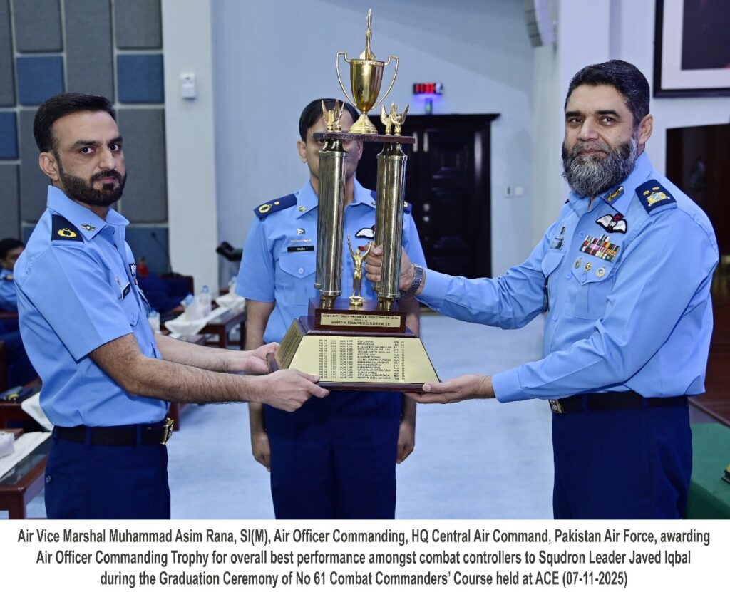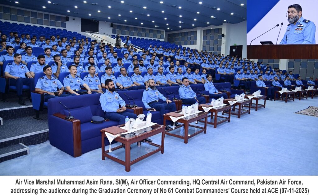 The **Graduation Ceremony of No 61 Combat Commanders’ Course** was held at the PAF Aerospacepower Centre of Excellence, where Air Vice Marshal Muhammad Asim Rana praised the dedication and professionalism of Pakistan Air Force officers.