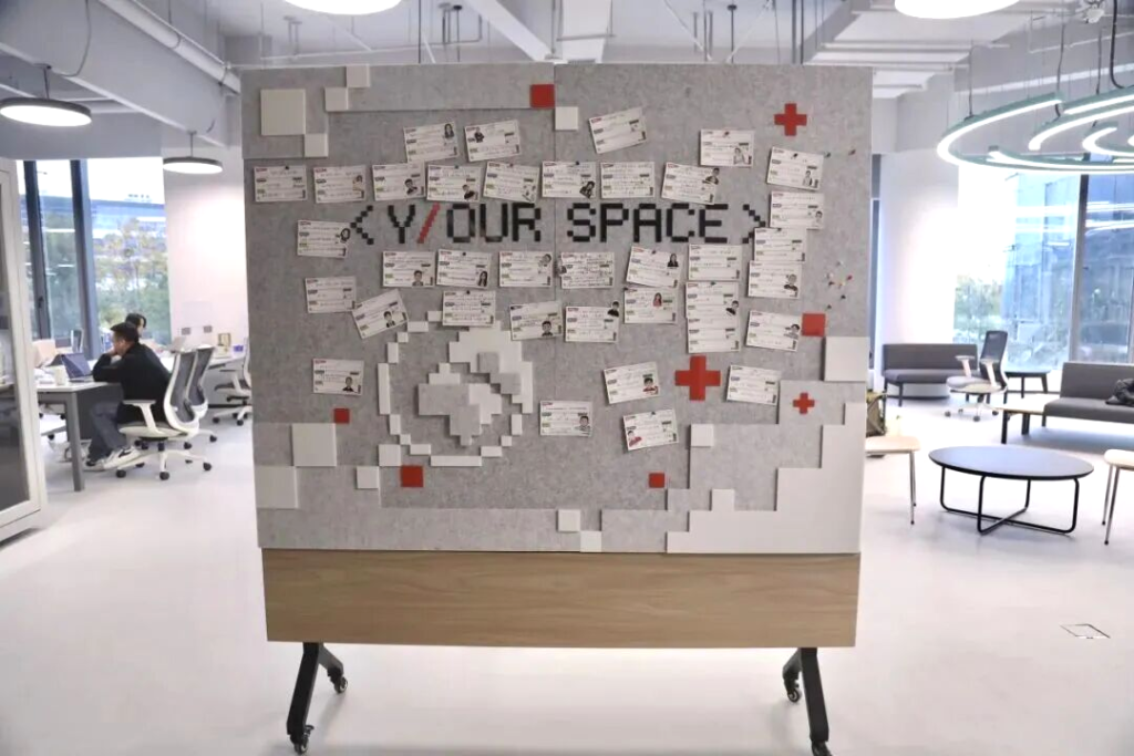 Developers pin their information on an exhibition board so they can easily find partners.