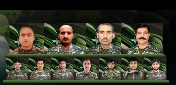 The nine brave soldiers who paid the ultimate sacrifice include Naib Subedar Azam Gul (age: 38 years, resident of District Khyber), Naik Adil Hussain (age: 35 years, resident of District Kurram), Naik Gul Ameer (age: 34 years, resident of District Tank), Lance Naik Sher Khan (age: 31 years, resident of District Mardan), Lance Naik Talish Faraz (age: 32 years, resident of District Manshera), Lance Naik Irshad Hussain (age: 32 years, resident of District Kurram), Sepoy Tufail Khan (age: 28 years, resident of District Malakand), Sepoy Aqib Ali (age: 23 years, resident of District Swabi), Sepoy Muhammad Zahid (age: 24 years, resident of District Tank).