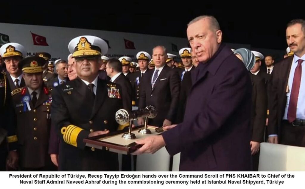 The commissioning ceremony of 2nd Pakistan Navy MILGEM class ship PNS KHAIBAR was held at Istanbul Naval Shipyard, Türkiye. The President of Republic of Türkiye, Recep Tayyip Erdoğan, graced the occasion as Chief Guest. Chief of the Naval Staff Admiral Naveed Ashraf also attended the ceremony.