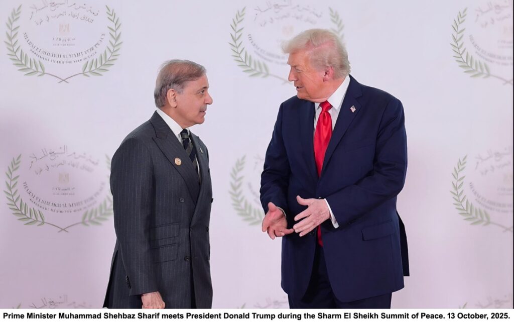 SHARM EL SHEIKH, Oct 13 (APP):Prime Minister Muhammad Shehbaz Sharif Monday here met with the United States President Donald Trump before the start of the International Gaza Peace Summit and exchanged views on matters of mutual interest.