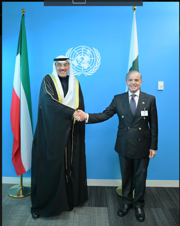 Prime Minister Muhammad Shehbaz Sharif, who is currently on a visit to New York to participate in the 80th session of the UN General Assembly, held a bilateral meeting earlier today, with His Highness Sheikh Sabah Al-Khaled Al-Hamad Al-Mubarak Al-Sabah, Crown Prince of the State of Kuwait.