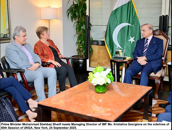 Prime Minister Muhammad Shehbaz Sharif met Ms. Kristalina Georgieva, Managing Director of the International Monetary Fund (IMF), on the sidelines of the 80thSession of the United Nations General Assembly today.